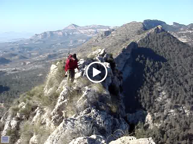 A pesar de que la meteorología daba agua para hoy, conociendo nuestro entorno, no le hemos hecho mucho caso y desde Catí, Pablo, Paco, Clemente, Miguel y yo, nos hemos aventurado por la bella silueta de la crestería del Maymó. Hemos pasado el Estrecho cruzando el barranco a la altura de la casa en ruinas que hay en su lecho, iniciando una fuerte subida siguiendo las huellas de las cabras hasta colgarnos en la cresta. Pronto llegamos al paso que bautizamos como “paso del caballo” y sin pensarnoslo mucho, y a pesar de que el fuerte viento no tiene compasión de nosotros seguimos cresta teniendo que evitarla en algún momento por la solana. En vista de que ya es hora del almuerzo y el viento sigue amenazante sin darnos tregüa, pasamos olimpicamente de él y almorzamos colgados en el roquedo como las águilas a pesar de que no pasamos de “pajarillos poco cuerdos”. Después de coger nuevas energías salimos de nuevo por la vertical a la cuerda y continuamos cresteando hasta que se afina tanto la cresta y el viento sigue azotando que no nos queda más remedio que pasarla por la ombría y cuando volvemos a ella ya la cresta se ha convertido en la loma que nos lleva hasta la cruz que nos indica lo cercano que tenemos ya nuestro objetivo, la senda del Farolero. Descendemos por ella sin apenas parar y por vertiginosa canal nos plantamos en el barranco de la Xau en pocos minutos, eso si con sumo cuidado por la humedad que en esta ombría tiene la roca. Llegamos a la casa y balsa de los peces donde cogemos agua del chorrico, que hoy si que racha y seguimos por este sendero hasta coincidir con la pista de la casa de la Foradá y por su machacante cuesta llegamos al collado donde paramos un minuto para volver a coger aire. Por último dejamos atrás La Ferrería y la Casa del Carrascalet y llegamos a Catí, después de una hermosa mañana de montaña donde nos hemos dado cuenta que algunos cuerpos ya no los tenemos para estos trotes pero en cuanto se nos olvide volveremos a la carga y puede ser pasado mañana.