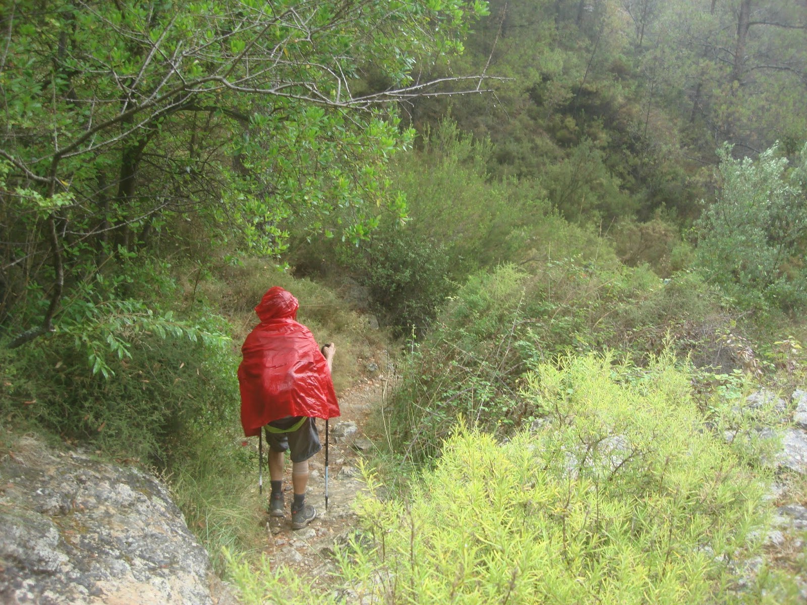 Bajamos por el Barranco de L'Asqueraruela con mucho cuidado pues todo el roquedo mojado resulta altamente resbaladizo.